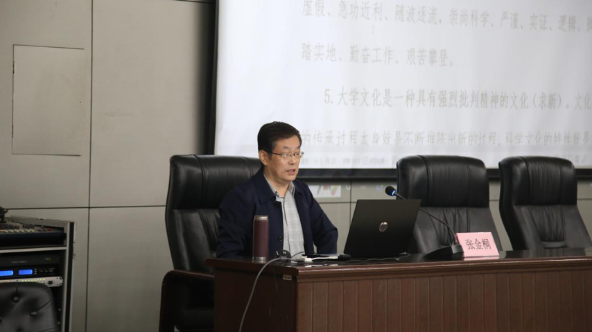 讲座中,张金桐首先提出问题什么是大学?鼓励学生深入思考,之后他以《大学》开篇,比较了中西方不同的教育理念;用自己的求学经历,阐释了大学传授知识、发展科学、服务社会的职能。通过探讨大学文化与大学精神的异同,提出学院应加强文化建设力度,着力培养大学教师队伍,形成自己独特的大学精神。对于刚步入大学的新生,他建议大家多读书、多锻炼,努力成为一个有目标、有涵养、有本事、和谐的大学人。讲座持续了两个多小时,最后学生为张金桐献上鲜花,并通过提问与其进行交流,碰撞出了精彩的火花。