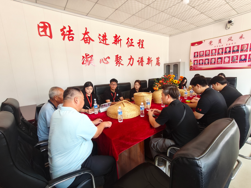 活动伊始,实践团在村支部王立国的带领下找到村非遗编织项目传承人王计申。在座谈中,同学们了解到76岁的王计申从十六七岁开始就跟着父母学习编织技艺,从编个圆垫开始,到箩筐、簸箕、锅盖、花篮……如今他已经熟练掌握30多种生活用具和工艺品的编织方法。作为非遗传承人,王计申一心想把这门手艺传承下去:“手艺是老祖宗留下的根,只要还有一个人愿意学,我就不能让它断在我手里。”在他的影响下,老人的子孙也都学会了这门手艺。