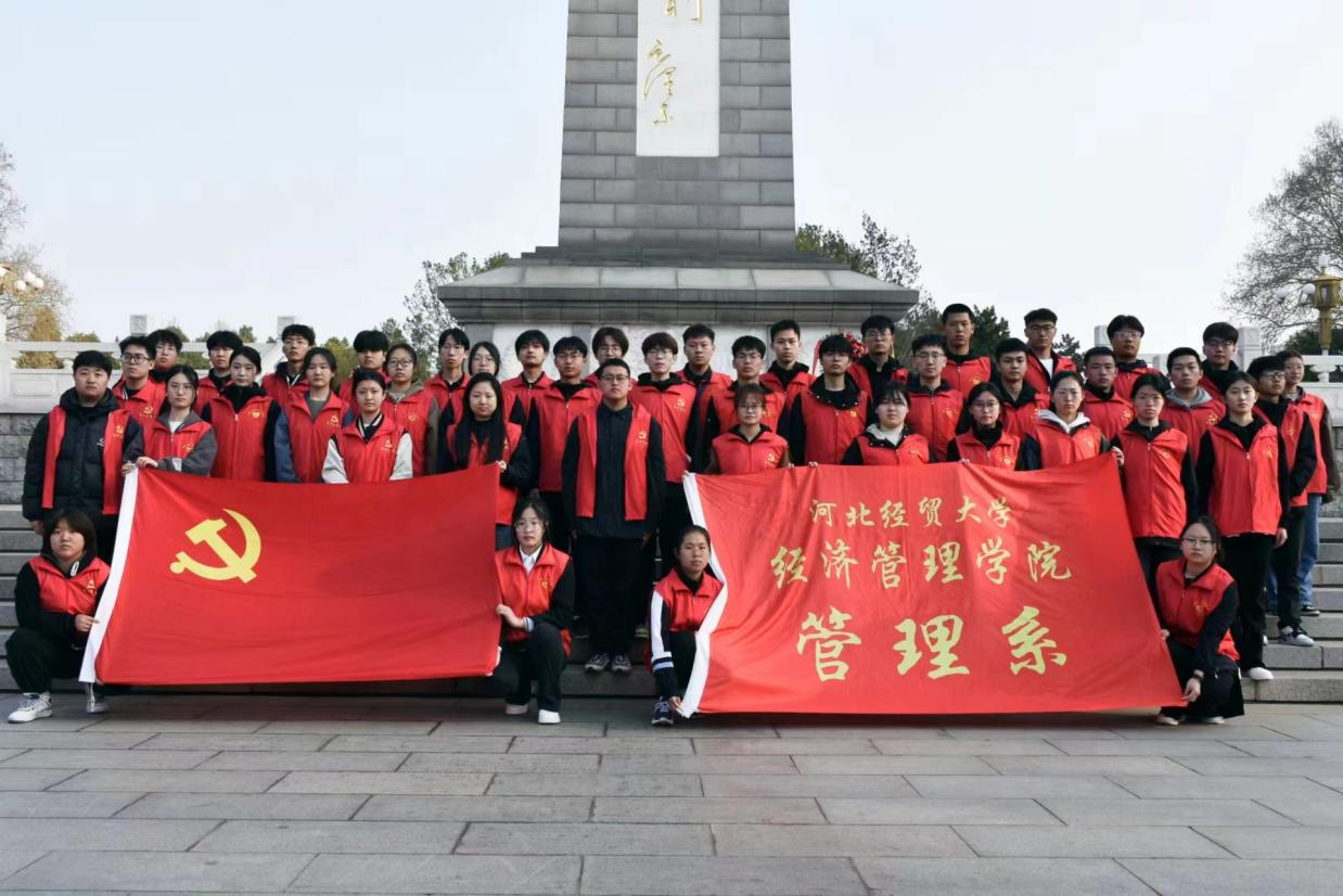 为落实立德树人根本任务,坚定学生理想信念,增强学生的民族自豪感,4月4日,河北经贸大学经济管理学院管理系部分学生代表到华北军区烈士陵园开展了行走的思政课之“红色课堂”实践教学活动。