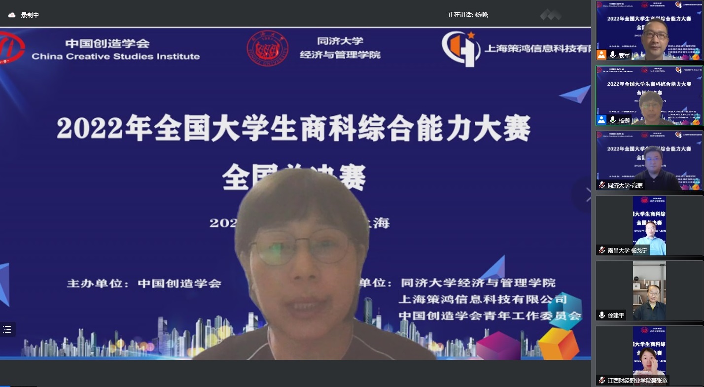 2022716日至17日由中国创造学会主办,同济大学经济与管理学院、上海策鸿信息科技有限公司、中国创造学会青年工作委员会承办的2022年全国大学生商科综合能力大赛全国总决赛在线上举行。Beat365官网商务系李佳林、路铂涵、李霄鹏组成的代表队,通过一天紧张激烈的比拼,以小组第一的成绩进入总决赛答辩环节,并最终荣获全国总决赛特等奖。