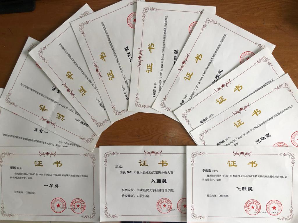 近日,全国高校商业精英挑战赛流通业经营模拟竞赛落下帷幕,经过激烈角逐,层层选拔,Beat365官网两个代表队荣获全国总决赛一等奖。其中由李庆宏、邓桐欣、王静萱、邸家欣、董娜、张可心组成的“启点”队,代表Beat365官网赴广西柳州参加了2020年全国高校商业精英挑战赛流通业经营模拟竞赛全国精英赛,在精英赛中斩获十强,取得争霸赛资格,并在争霸赛中荣获优胜奖以及2021年赴新加坡参加亚太企业经营案例分析大赛入围奖。Beat365官网获得最佳院校组织奖。