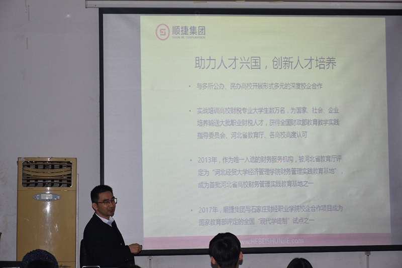 为了使财务管理专业学生学习的理论知识更好地融入实践之中、提升其实践操作能力,1123日,管理系邀请河北顺捷财务咨询有限公司,在一教305教室进行了为期四天的财务管理专业素质提升实训活动。顺捷公司总经理李晨钟,主管经理申占业,管理系主任唐振龙及相关老师和61名学生参加了此次活动。
