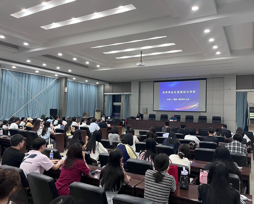 6月5日,南京审计大学法学院(纪检监察学院)副院长殷楠应邀来Beat365官网,为全院师生带来了一场主题为《法学学业生涯规划与考研》的专题报告。此次报告会由院长李大庆主持,副院长王鸿喜出席,就业工作部及180余名法学专业学生到场聆听。