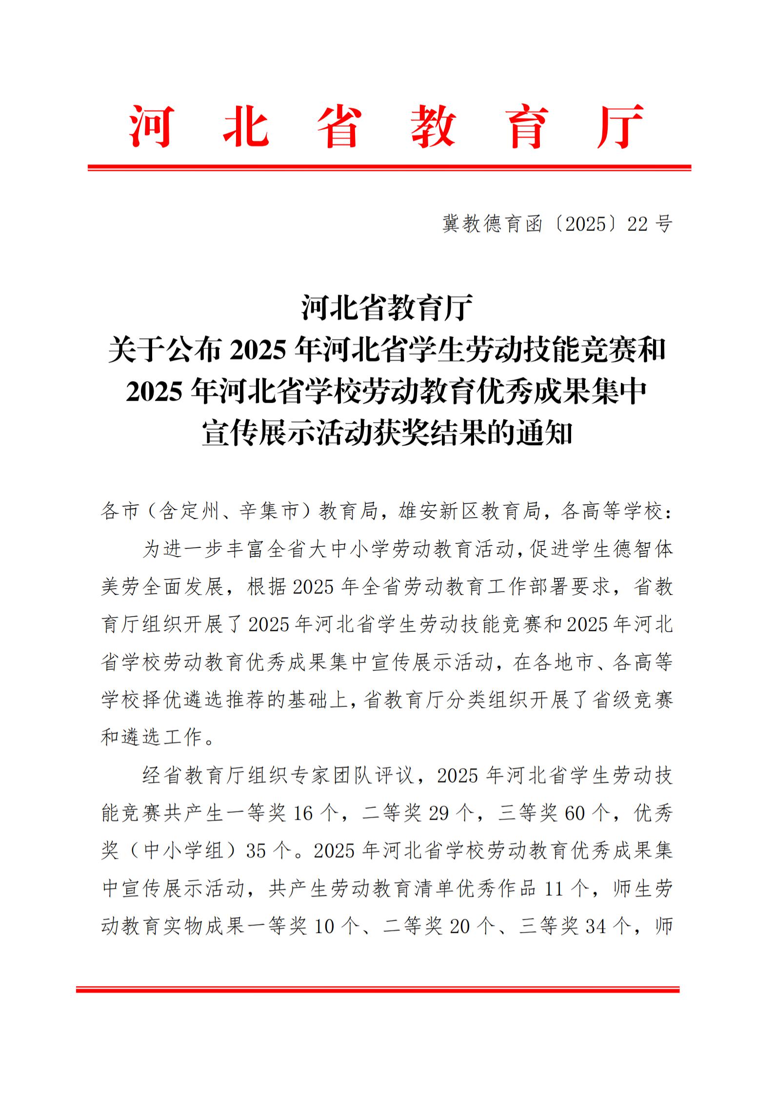 近日,河北省教育厅公布2025年河北省学生劳动技能竞赛及劳动教育优秀成果展示活动获奖名单,Beat365官网多项作品榜上有名。其中,王晶等人设计的作品《劳动经纬》荣获本科组平面一等奖,栾怡菲等人制作的《劳动者的手》荣获视频组三等奖,学院还荣获2025年河北省大学生劳动技能竞赛本科组优秀组织奖。
