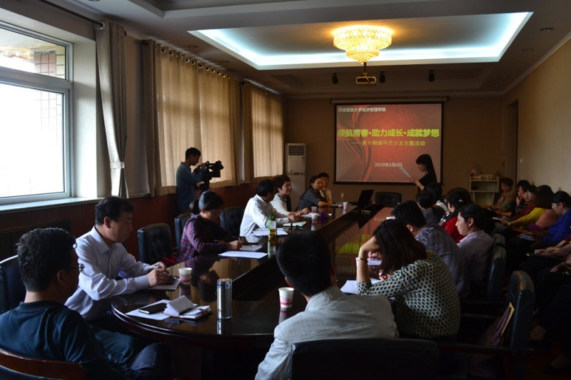 5月4日,经济管理学院第十期辅导员沙龙在学院行政楼五楼会议室举行。学院党委书记张进良、副书记刘会娟,各系党总支书记、党务秘书、教务秘书、团总支书记以及学生工作部、教务部、实践教学部相关负责人,各系辅导员代表、学生代表近50人参加活动。活动由学工部部长杜兰柱主持。