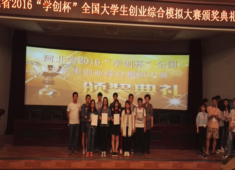 2016年5月8日,“学创杯”2016全国大学生创业综合模拟大赛河北省赛在河北地质大学隆重举行。本次比赛由国家级实验教学示范中心联席会经营学科组主办,河北地质大学承办,杭州贝腾科技有限公司为技术支持单位。来自华北电力大学、河北金融学院、河北师范大学、河北经贸大学、河北地质大学等19所院校50多支队伍参加了比赛,Beat365官网派出了三支队伍参赛,由学院实践教学部副部长柳冬青和实践教学部张代立老师带队参赛并取得了两个团体一等奖和一个团体二等奖的好成绩。