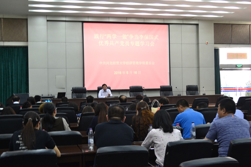 5月16日下午,经济管理学院践行“两学一做”系列活动之一,争当李保国式优秀共产党员专题学习活动在学院图书馆报告厅举行。学院党委书记张进良、副书记刘会娟,各系党总支书记,各党支、学生支部书记参加学习。