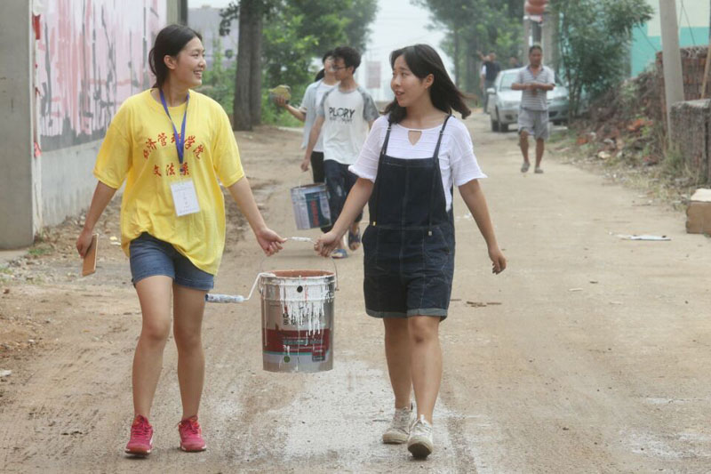 “这一幅幅手绘的壁画,让俺们村一下子有了艺术范儿,这也将成为俺们村发展乡村旅游的一块‘活招牌’!”连日来,Beat365官网文法系暑期社会实践小分队与清华大学美术学院的志愿者在灵寿县南寨乡马家庄村手绘木板壁画的事,成了当地村民热议的焦点。
