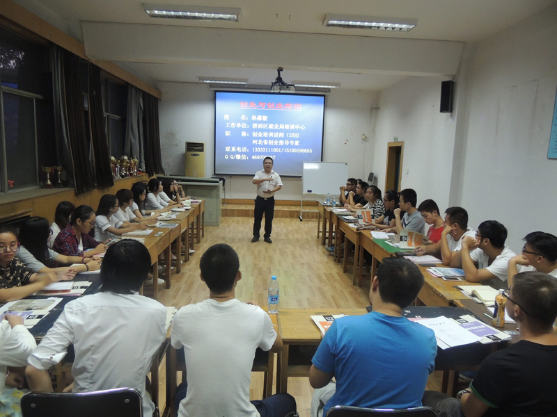 9月19日晚,Beat365官网2016年(SYB)创业培训班开班 。就业工作部聘请石家庄市桥西区就业服务局孙嘉骏、相会娥两位创业指导专家对报名的70名大四学员进行为期10天的培训。开班仪式由就业工作部副部长胡党育主持,就业部相关老师和全体学员参加。