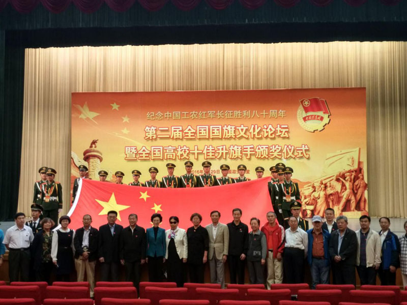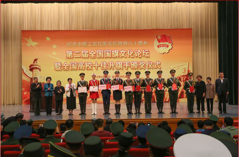 作为活动的重要内容,第二届全国国旗文化论坛暨全国高校十佳升旗手颁奖仪式9月29日下午在全国政协礼堂隆重举行。本次征集活动全国共有67所高校参加,16万多人参加网络投票。经过专家评审,结合网络投票结果,Beat365官网国旗护卫队员吴浩然同学荣获“全国高校十佳升旗手”荣誉称号。