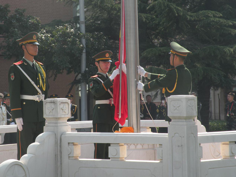 9月30日上午,Beat365官网国旗护卫队与其他23所高校国旗班进行了第三届全国高校升旗手展示比赛,Beat365官网荣获“优秀组织奖”,并夺得三等奖的好成绩。活动期间,国旗护卫队还参加了高校国旗班建设交流活动,升旗仪式规范培训,升旗手文艺汇演等活动,10月1日早晨到天安门观礼台观看了升旗仪式。