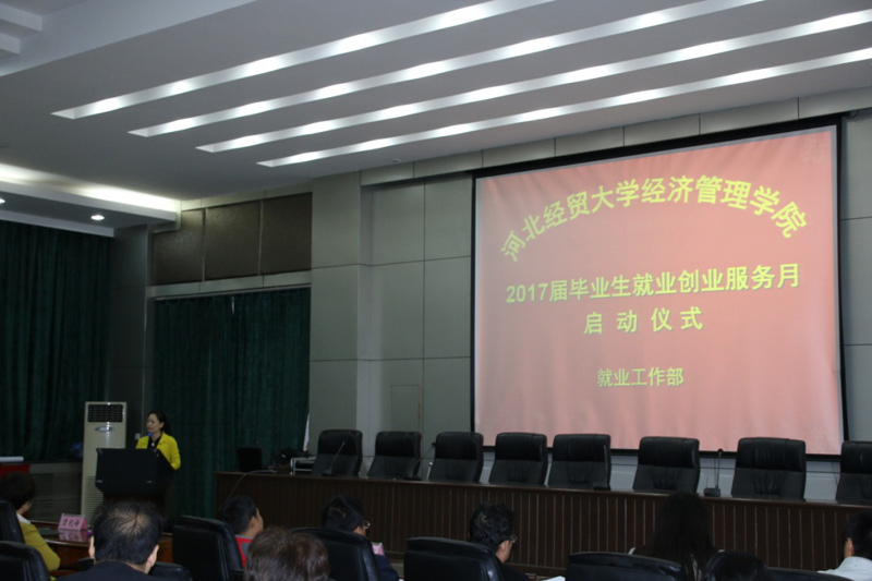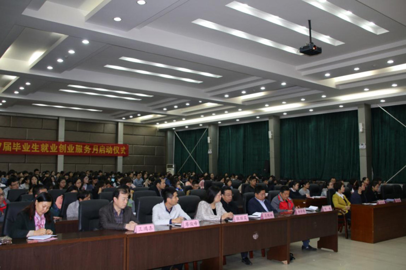 10月21上午,Beat365官网2017届毕业生“就业创业服务月”启动仪式在图书馆报告厅举行。院党委副书记刘会娟,各系党总支书记出席,毕业班辅导员,就业工作部全体成员,以及优秀校友代表、毕业生代表三百余人参加。仪式由就业工作部部长韩平生主持。