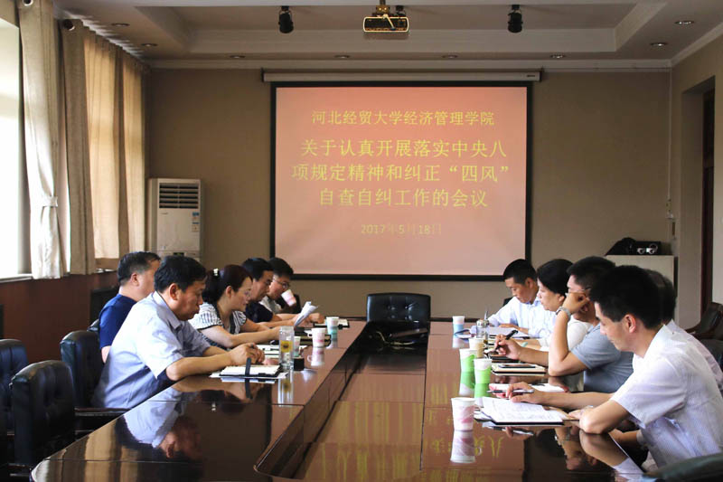 为了贯彻落实省纪委驻教育厅纪检组下发的《关于认真开展落实中央八项规定精神和纠正“四风”自查自纠工作的通知》的文件精神,按照大学的要求,Beat365官网于5月18日下午在行政楼五楼会议室,召开了关于认真开展落实中央八项规定精神和纠正“四风”自查自纠工作会议。学院领导班子成员出席了会议,各系党总支书记参加了会议。