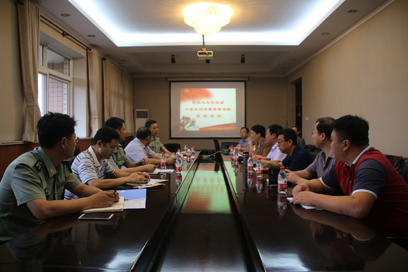 6月13日上午,河北省教育厅学生处处长马贵明、河北省征兵办副处长杜国庭,石家庄市警备区参谋长陈勇等一行5人莅临Beat365官网,检查督导2017年大学生征兵工作,并对有关重点、难点工作进行了交流。院党委书记张进良、党委副书记张丽英、各系党总支书记出席会议,学工部相关人员、辅导员代表参加会议。