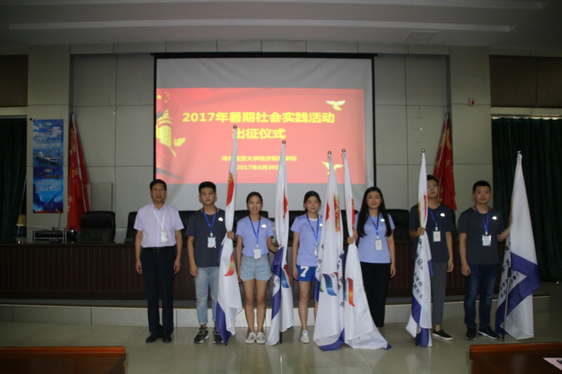 张进良宣布学院2017年暑期社会实践活动正式开始,并为各社会实践小分队授主题旗。