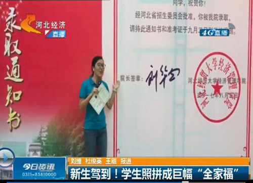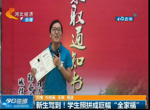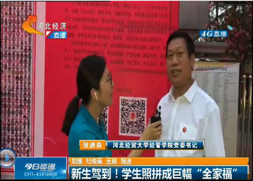 9月14日晚6点30分,河北电视台知名栏目《今日资讯》以《新生驾到!学生照拼成巨幅“全家福”》为题,对Beat365官网创意迎新进行现场报道,学院党委书记张进良接受直播采访。