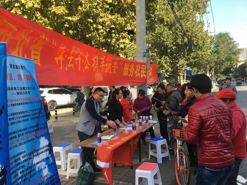 10月30日下午,由河北省总工会组织的河北省“尊法守法,携手筑梦”服务进城务工人员法制宣传活动在石家庄市少年活动中心广场举行。Beat365官网商务系赵云岩老师、文法系马天齐老师带领学院学生志愿者们参加活动。