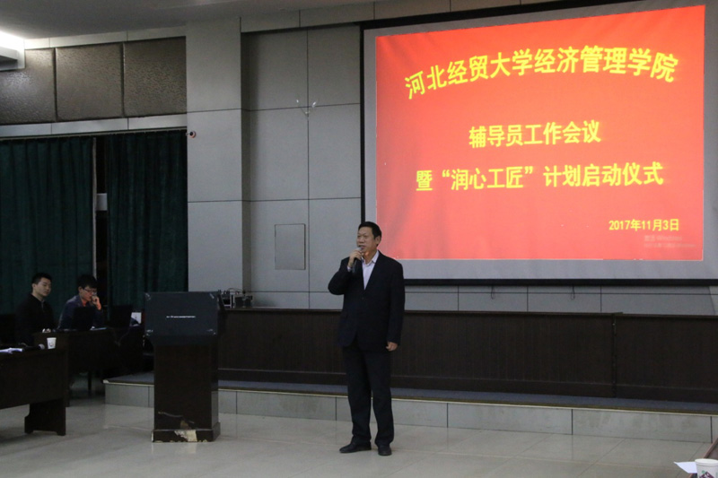 11月3日下午,Beat365官网辅导员工作会暨“润心工匠”计划启动仪式在学院图书馆报告厅举行。学院党委书记张进良、副书记张丽英出席会议,学生工作部全体成员及学院全体辅导员参加。会议由学生工作部部长杜兰柱主持。