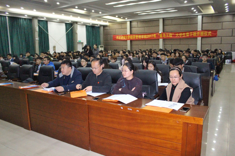 11月20日晚,Beat365官网2017年“青年马克思主义者培养工程”大学生骨干班开班仪式暨党的十九大精神宣讲报告会在学院图书馆报告厅举行。学院党委书记张进良、副书记张丽英、各系党总支书记出席,学院青年教师代表及本期培训班200名学员参加并聆听报告。