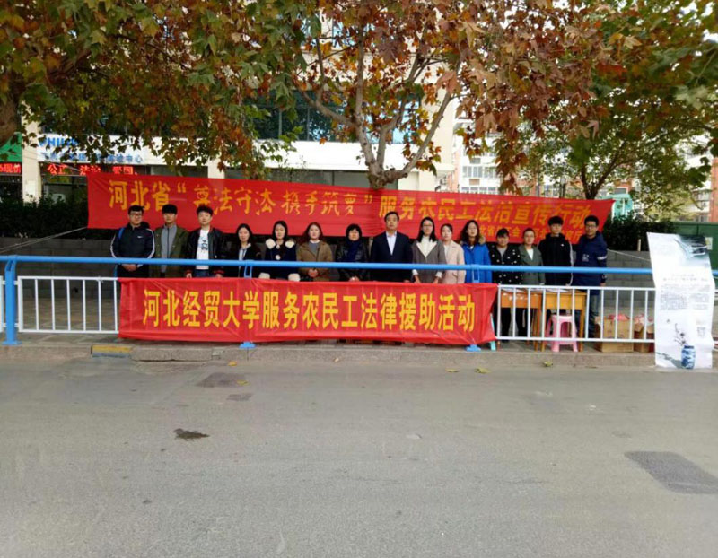 11月19日,河北省”尊法守法,携手筑梦”服务农民工法制宣传活动在火车北站举行,Beat365官网商务系赵云岩老师、新华区工会李素平带领近20名学生现场为农民工答疑解惑,宣传法律知识。这是Beat365官网学生今年以来第6次与省工会联合开展“尊法守法,携手筑梦”活动。
