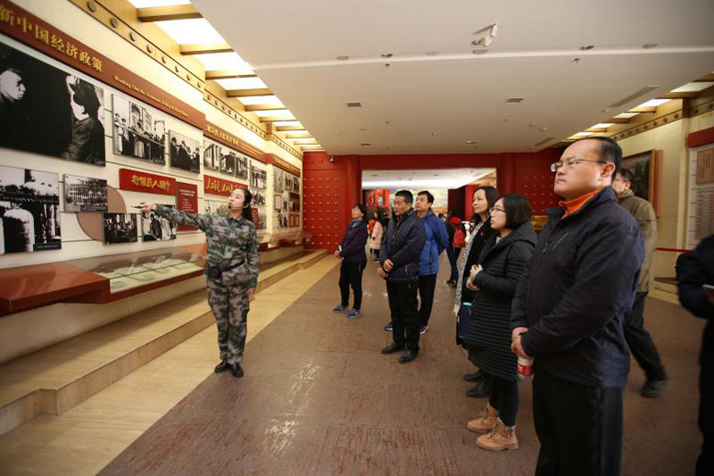 第二天,全体党员来到革命圣地西柏坡中共中央旧址,瞻仰毛泽东等开国领袖旧居和七届二中全会旧址。在七届二中全会旧址前,面对鲜红的党旗,全体党员举起右手,齐声宣读入党誓词。随后,大家步入西柏坡纪念馆,跟随讲解员一起参观了一件件简朴的实物、一幅幅珍贵的图片和一座座生动的沙盘,回顾党中央在西柏坡波澜壮阔的奋斗历程。