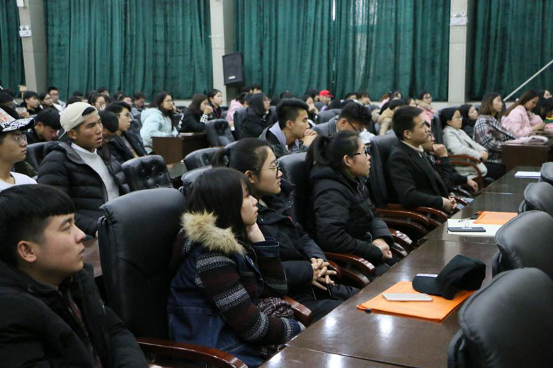 12月1日下午,马克思主义学院十九大精神研究生宣讲团在图书馆报告厅围绕生态文明建设和中国梦做了宣讲,学院8支“学习十九大精神”大学生宣讲团成员以及2017年青马班学员共计200人聆听学习。