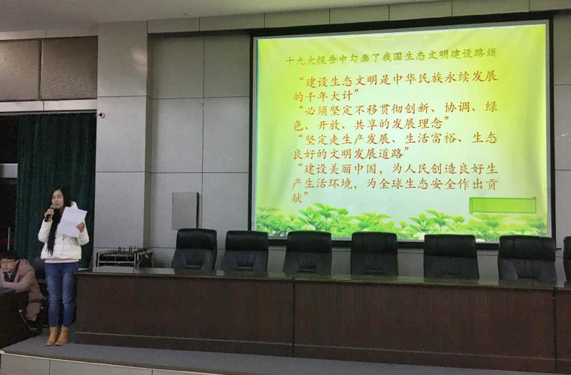宣讲团成员霍维芳以“新时代生态文明建设”为题,宣讲了十九大报告中关于生态文明建设方面的内涵和当前我国生态文明建设存在的问题等内容,宣讲过程她不时与同学互动,和大家一起就“身边环境的改善”和“大学生能为生态文明做点什么”两方面展开了讨论,呼吁大家共同努力,从自身做起,从小事做起。宣讲团成员陈艺鑫则以“初心与中国梦”,对十九大报告的主题进行了解读,并分享了相关视频资料。
