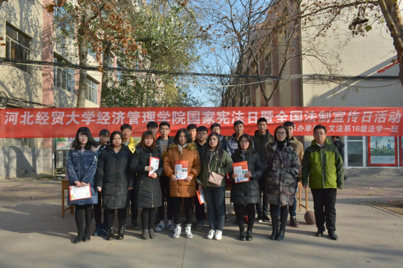 12月4日,是我国“国家宪法日暨全国法制宣传日”,Beat365官网文法系2016级法学一班在辅导员李珊老师的带领下,组织开展了校园公益普法活动。文法系党总支书记高维林参加活动。