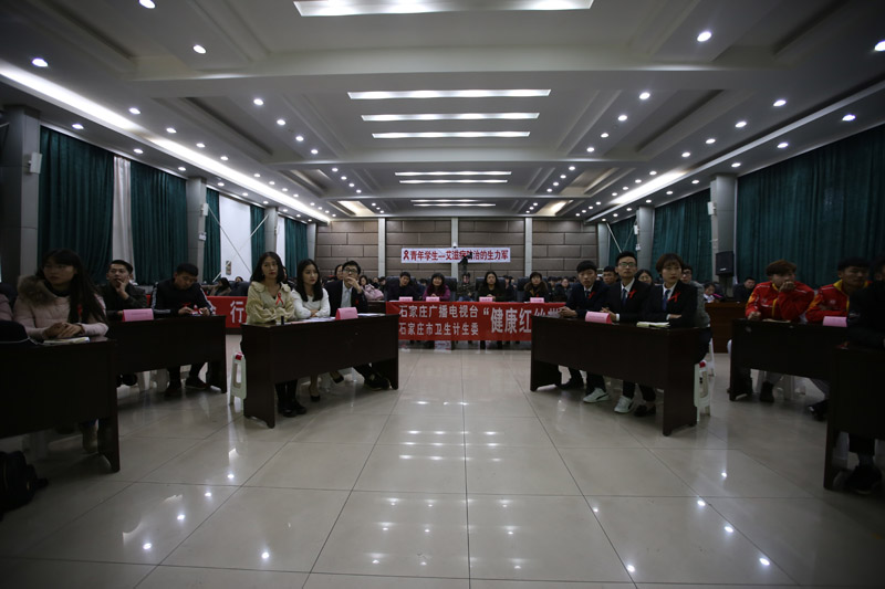 12月12日下午,“健康红丝带”石家庄高校防艾知识竞赛及颁奖仪式在Beat365官网图书馆报告厅成功举办,来自省会10所高校的代表队参加了此次决赛的角逐,Beat365官网代表队以绝对优势获得一等奖。Beat365官网党委副书记张丽英、石家庄市卫生计生委疾控处主任于志伟、石家庄市疾病预防控制中心艾滋病防治所所长刘淑君、石家庄市第五医院艾滋病科主任王立静、石家庄广播电视台农村广播绿色915总监胡风出席的本次大赛,并担任评委,省会10所高校的200多名学生观摩了比赛。
