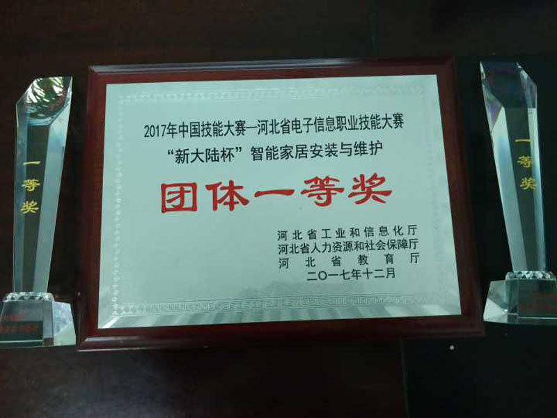 12月11日-12日,中国技能大赛“新大陆杯”智能家居安装与维护省级决赛在河北交通职业技术学院举办,Beat365官网派出了信息系两支代表队参赛,在40支队伍中表现出众,分别获得团体一等奖和团体二等奖,刘兵、杨昊荣获个人一等奖,徐宏伟、李娜、李莹莹、胡其昊荣获个人二等奖,为Beat365官网争得了荣誉。