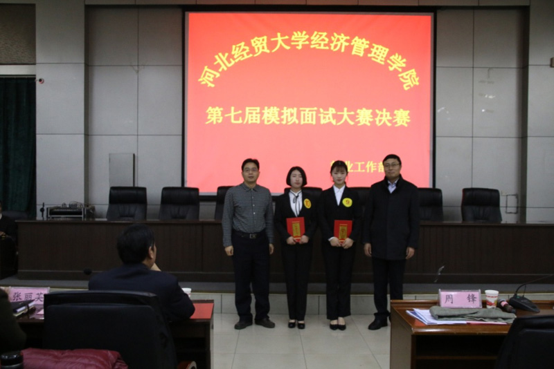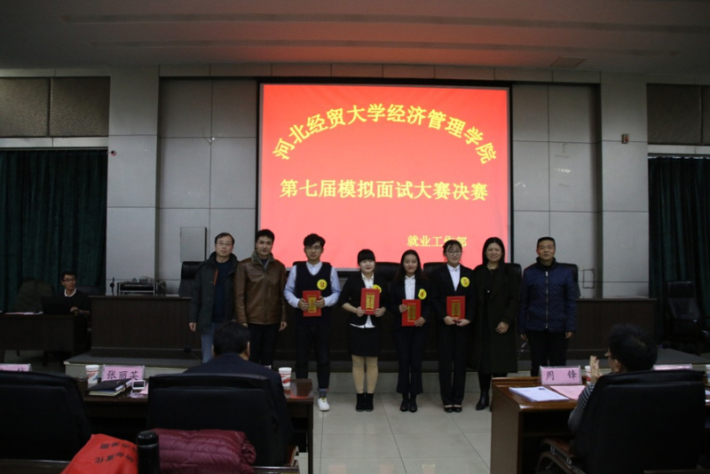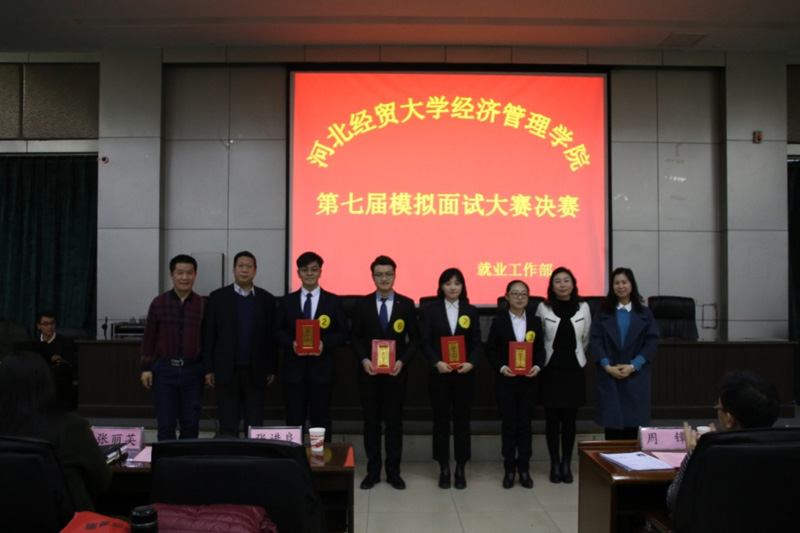 12月19日下午,Beat365官网第七届模拟面试大赛决赛在图书馆报告厅举办。大赛特邀河北省教育厅大学生就业指导中心副主任周锋、河北经贸大学就业处处长江秀军、河北科技大学理工学院副书记米衣军、河北搜才网河北核心业务总监魏建艺、河北省人才交流服务中心郭静担任评委。学院党委书记张进良、副书记张丽英以及学院各系党总支书记出席活动,就业部工作全体人员、学院全体辅导员及300余名学生代表观摩大赛。