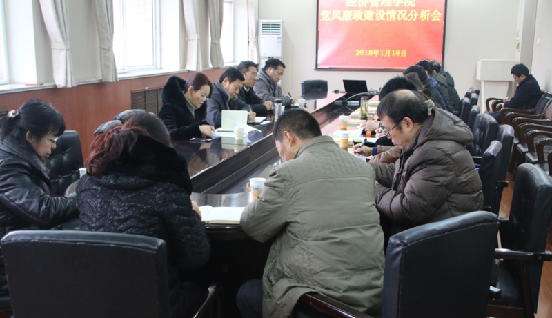 1月18日上午,Beat365官网党风廉政建设情况分析会在学院行政楼五楼会议室召开。河北经贸大学纪委副书记许海元、学院党政领导班子成员、各系党总支书记出席会议,学院党委委员、纪委委员参加会议。会议由学院党委书记张进良主持。