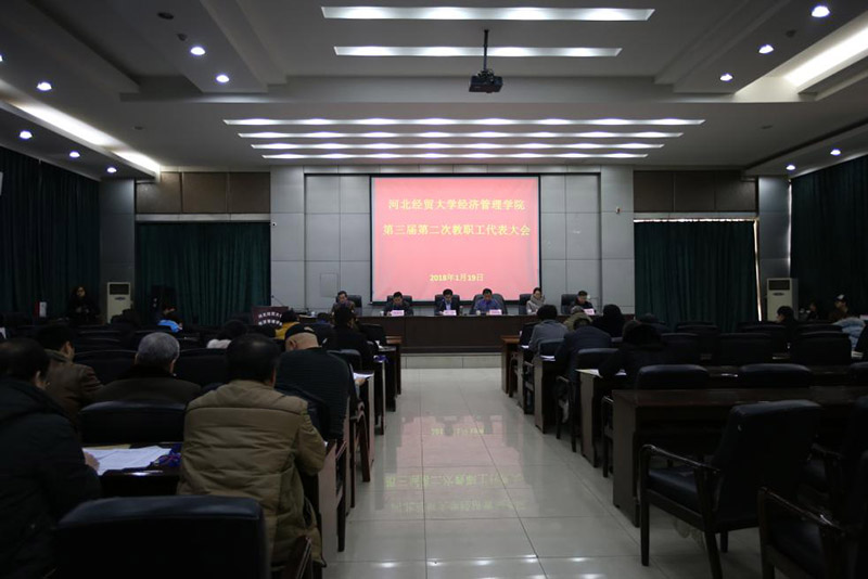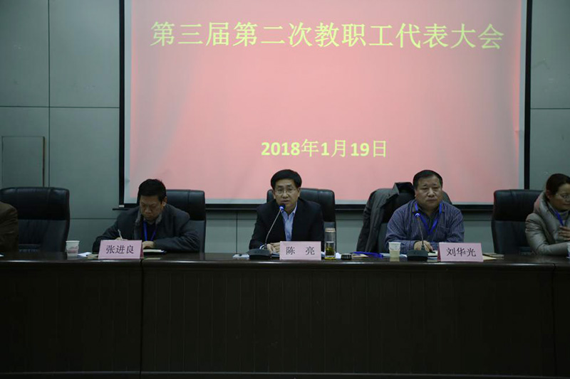 1月19日下午,Beat365官网第三届第二次教职工代表大会在图书馆报告厅举行。校领导陈亮出席并讲话,学院全体领导出席大会,来自五个代表团的45名代表参加,大会由学院副院长赵宇主持。