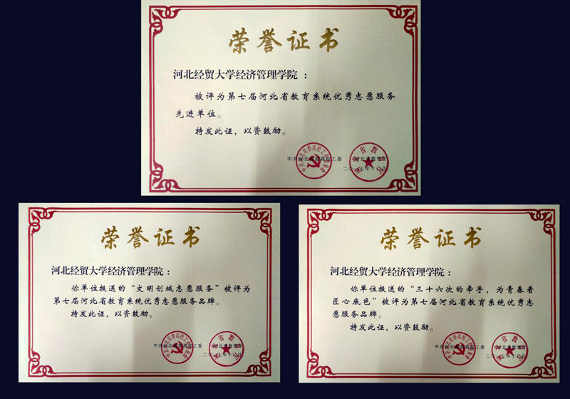 在第七届河北省教育系统志愿服务评比活动中,Beat365官网被评为优秀志愿服务先进单位,其中“文明创城志愿服务”“三十六次的牵手,为青春着匠心底色”活动被评为优秀志愿服务品牌;Beat365官网信息系、管理系协会青年志愿者被评为优秀志愿服务组织;梁博宇、姜瑞被评为优秀志愿服务先进工作者;唐莉、赵云岩被评为优秀志愿者。