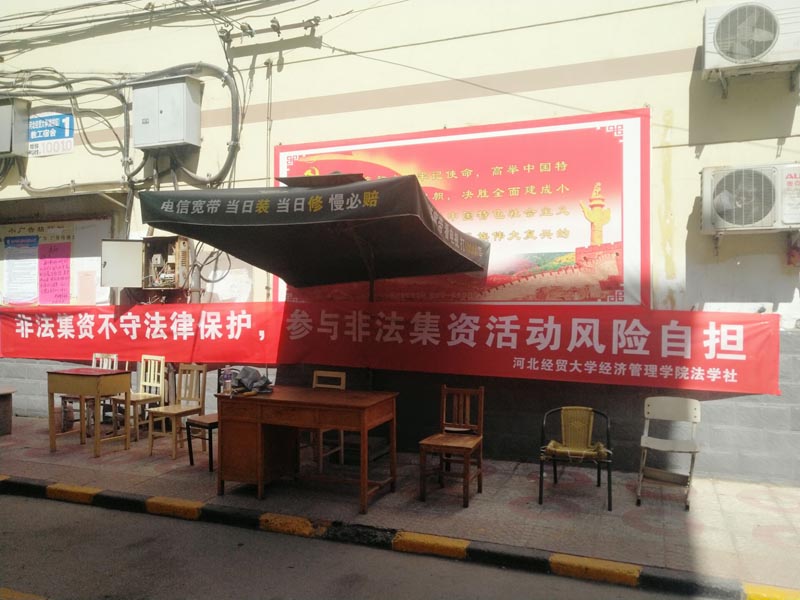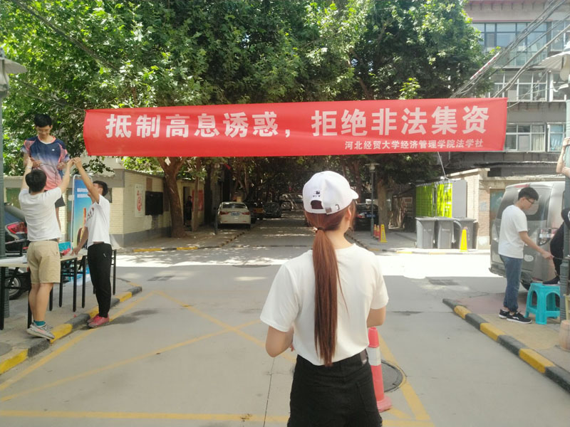 根据河北省教育厅《2018年防范非法集资宣传月活动工作方案》的通知要求,Beat365官网精心组织,广泛宣传,近期在学院及家属区组织开展了一系列防范打击非法集资宣传活动。