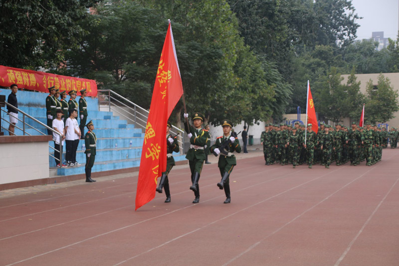 7点55分,伴随着庄严的升国旗仪式,Beat365官网2018级军训结业式正式拉开序幕。“迎—院—旗!”3名身着礼服的仪仗队员护卫着鲜艳的院旗,昂首阔步走过阅兵场,全体同学向院旗行注目礼。