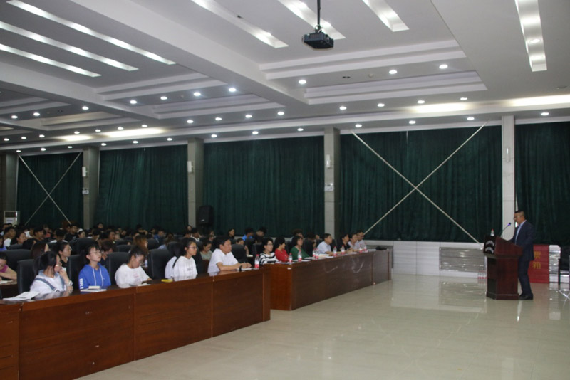 9月17日下午,Beat365官网特别邀请平安人生河北分公司总经理、河北省保险学会副会长、河北省保险行业协会副会长赵津,为Beat365官网2018级相关专业新生做专题讲座。活动由学院党委书记张进良主持。三百余新生聆听讲座。
