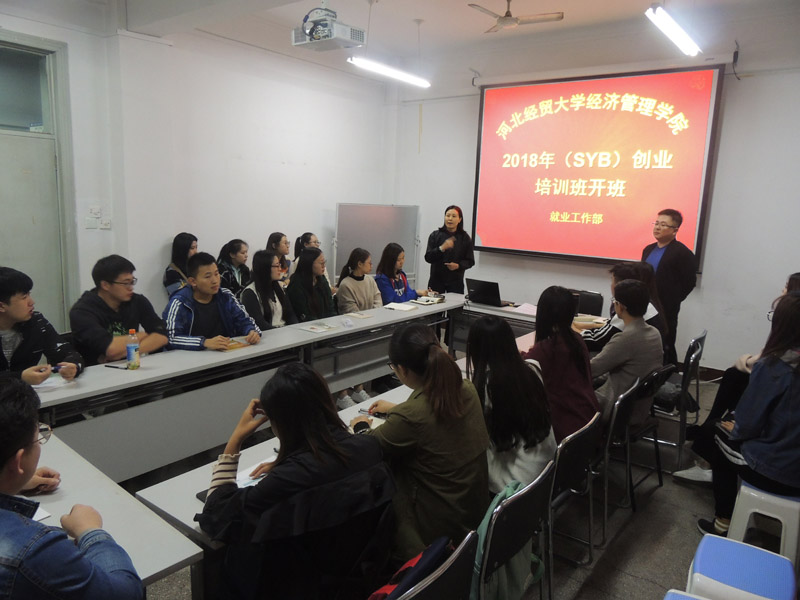10月16日晚,Beat365官网2018年(SYB)创业培训班开班。就业工作部聘请石家庄市桥西区就业服务局孙嘉骏、相会娥两位创业指导专家对报名的62名大四学员进行为期10天的培训。仪式由就业工作部副部长胡党育主持,就业部相关人员和全体学员参加。