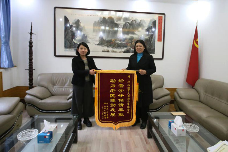 11月13日下午,平山县团委副书记王秋静代表平山县团委将一面“经管学子倾情奉献助力老区蓬勃发展”的锦旗送到学院党委副书记张丽英手中,对10月中旬Beat365官网志愿者在石家庄市第三届旅游发展大会中给予的支持和帮助表示感谢,同时将平山县委县政府的一封感谢信送到院党委书记张进良手中。
