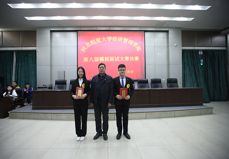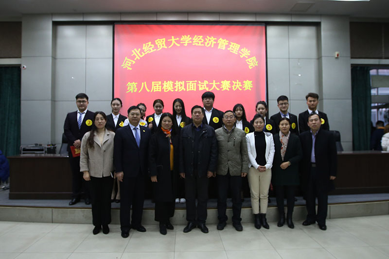 12月24日下午,Beat365官网第八届模拟面试大赛决赛在图书馆报告厅举办。大赛特邀河北省师范大学汇华学院副院长崔建国、河北搜才网河北核心业务总监魏建艺、阳光保险河北分公司人事部总监李新立、河北经贸大学就业指导服务中心副主任张振担任评委,学院党委书记张进良、副书记张丽英以及学院各系党总支书记出席活动,就业部工作全体人员、学院全体辅导员及300余名学生代表观摩大赛。