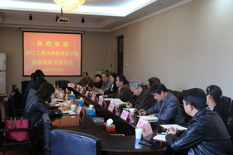3月21日,浙江工商大学杭州商学院党委副书记狄瑞波等一行6人来Beat365官网考察交流。学院副院长赵宇、党委副书记张丽英热情接待了来访客人并出席座谈会。学院各系主任、学生工作部、就业工作部、团委、教务部、实践教学部等部门负责人参加座谈。