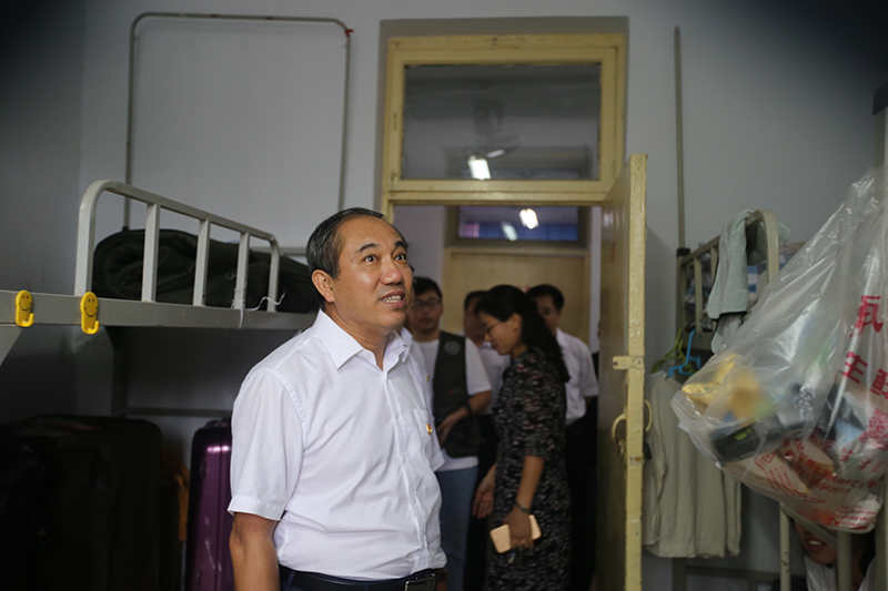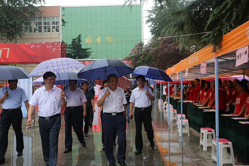 8月24日下午,新生报到期间,校党委书记董兆伟,校党委副书记、校长刘兵,校党委副书记陈亮冒雨到Beat365官网南西校区检查指导新学期工作,学院全体领导班子陪同。