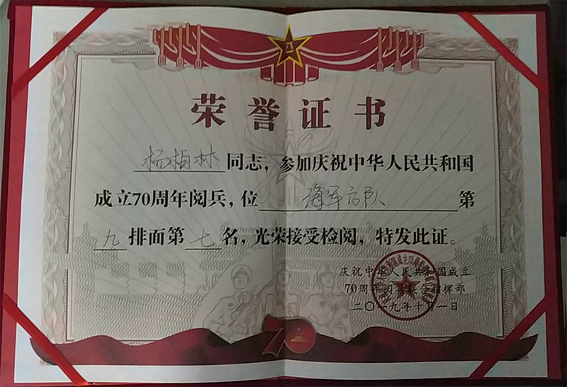 “在阅兵现场,习近平主席的每句话我都听得真真切切,热血沸腾”,杨柏林激动地说。他感恩部队,部队的生活强健了他的身体,更磨练了他的意志;他感恩母校,母校不仅传授了他专业文化知识,更培养他有责任、有担当、有奉献意识,有爱国热血、有报国信念。