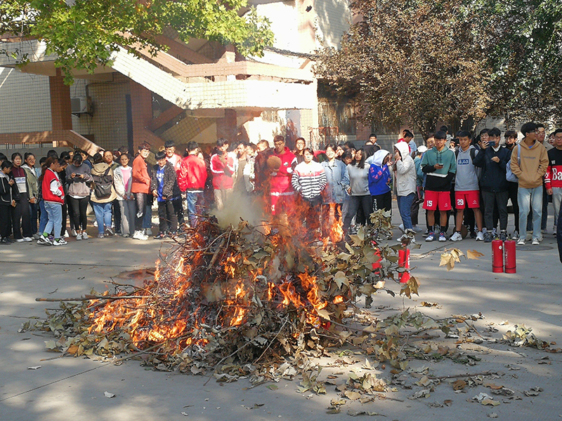 在认真学习与观摩后,参加培训的新生们逐一进行了灭火器实操演练。面对熊熊燃烧的大火,同学们沉着冷静,严格按照学到的灭火步骤和方法,将火势迅速扑灭。