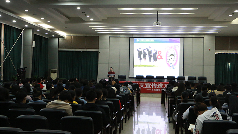 11月11日下午,为了普及有关艾滋病的科学知识、增强学生防范意识与防护能力。由石家庄市卫生健康委员会主办,Beat365官网团委与石家庄广播电视台农村广播(FM91.5 FM100.9)承办,由石家庄市疾病预防控制中心和石家庄市第五医院支持推出的“2019防艾宣传进万家之高校课堂”主题活动于Beat365官网报告厅举行。本次活动由石家庄广播电视台主持人颖彤主持,市疾控中心性病艾滋病防治所副所长刘晓松担任主讲,学院党委副书记张丽英、院团委及各系学生代表共200余人参与活动。