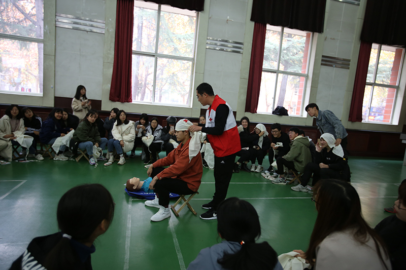 活动开始,讲解老师对红十字运动的相关历史及救护基本知识进行了详细地讲述,并通过视频展示及现场讲解等方式对心肺复苏、呼吸道异物梗阻急救、创伤救护等知识进行了重点解读。为了巩固了培训效果,下午进行了实操演练,老师分步演示,耐心讲解,学生们积极参与,反复练习。培训基本达到学生们了解熟悉应急救护知识的目的。