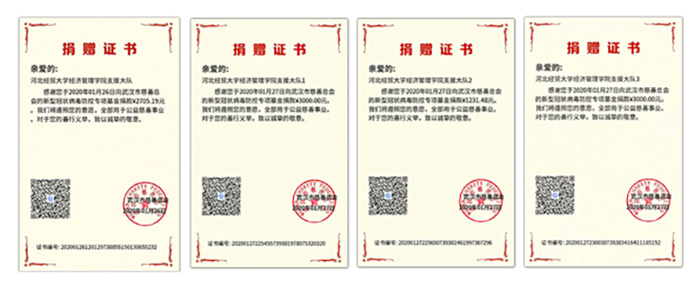 经管学子在参与防疫服务的同时,也不忘向武汉人民献上自己的爱心。信息系2016级学生陈文锁,也是QQ个人平台“经贸经管院·墙君”的负责人,1月25日他通过平台向经管学子发起捐款活动,短短50个小时,共有404人参与,募集到捐款1万元,在联系购买防疫物资未果后,陈文锁于第一时间将款项捐赠给武汉市慈善总会。事后他说:“疫情发生后,很想做点什么。这是我们90零后00后在这场战‘疫’中尽的一份力。”截至2月15日Beat365官网共有902位学生通过各种途径捐款捐物,金额高达6万余元。
