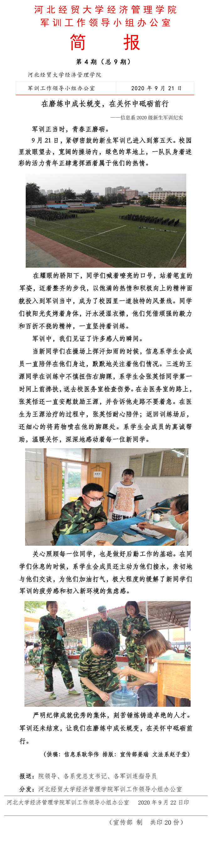 2020级新生军训工作简报第4期(总9期)