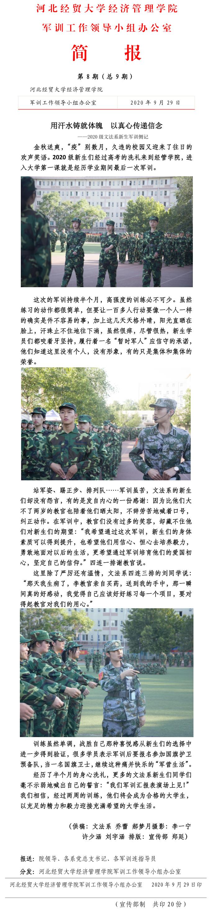 2020级新生军训工作简报第8期(总9期)