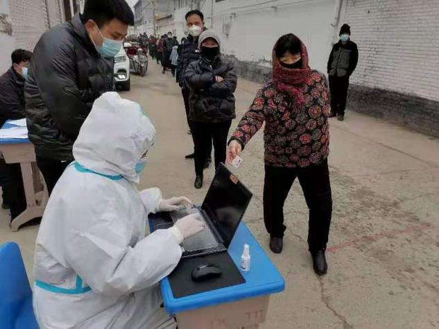 “藁城区形势严峻,但这是我们从小长大的家乡,我们要奋力守护!”18级会计3班史帛、19级会计1班鲍思颖两位团员逆行高风险地区(石家庄市藁城区),参与当地抗疫志愿服务。高风险地区核酸检测频率之快,压力之大,是他们之前没有想到的,在志愿活动中他们主动承担宣传防疫、人员信息录入、协助检测工作。露天检测手僵了,脚麻了,眼镜模糊了,一天工作数小时深感疲惫,但看到忙碌一天的白衣天使仍在奋战,听到村委干部的鼓励赞赏,他们就充满了力量与斗志,继续顽强工作,全力守护家乡的安全。